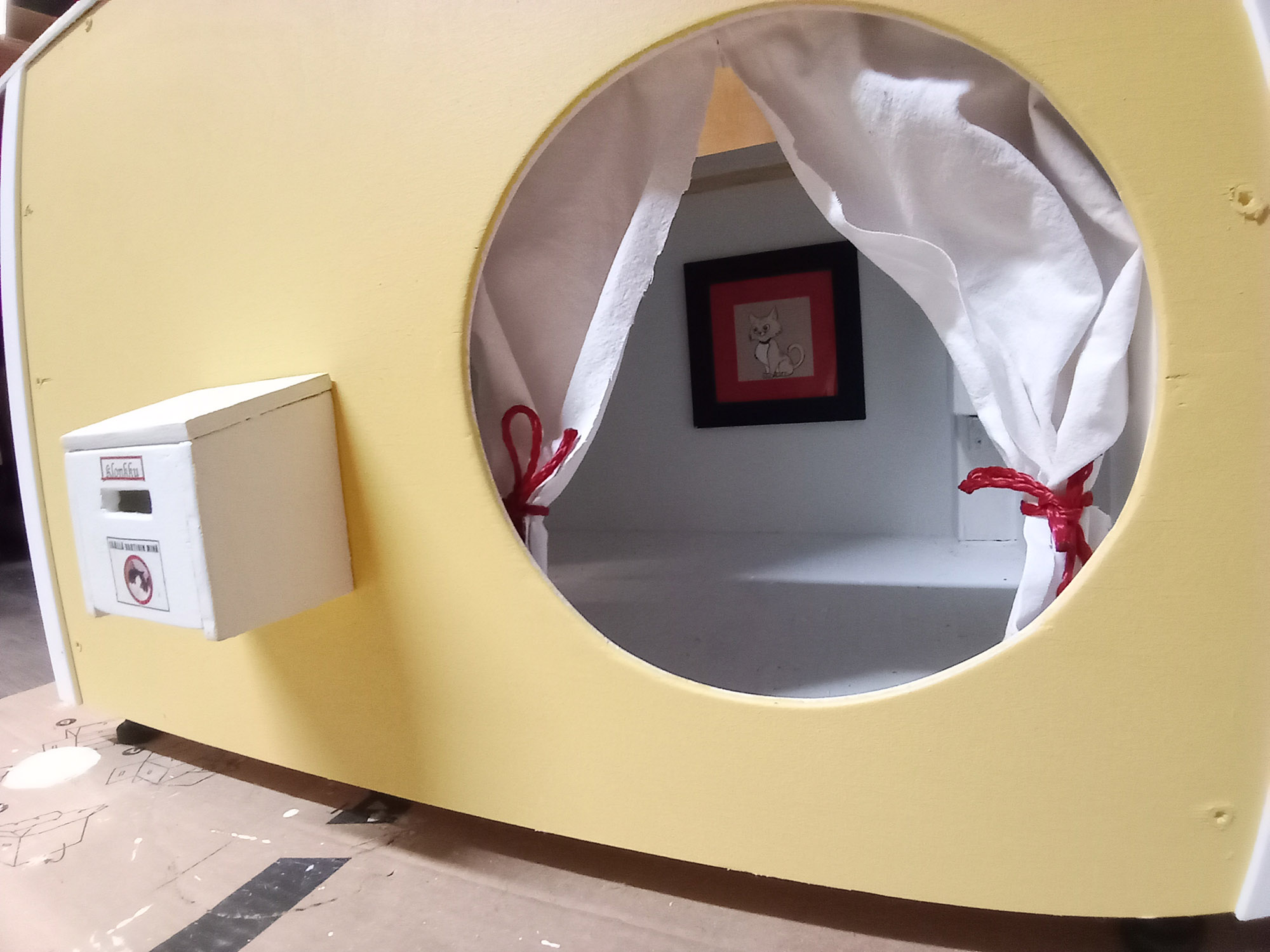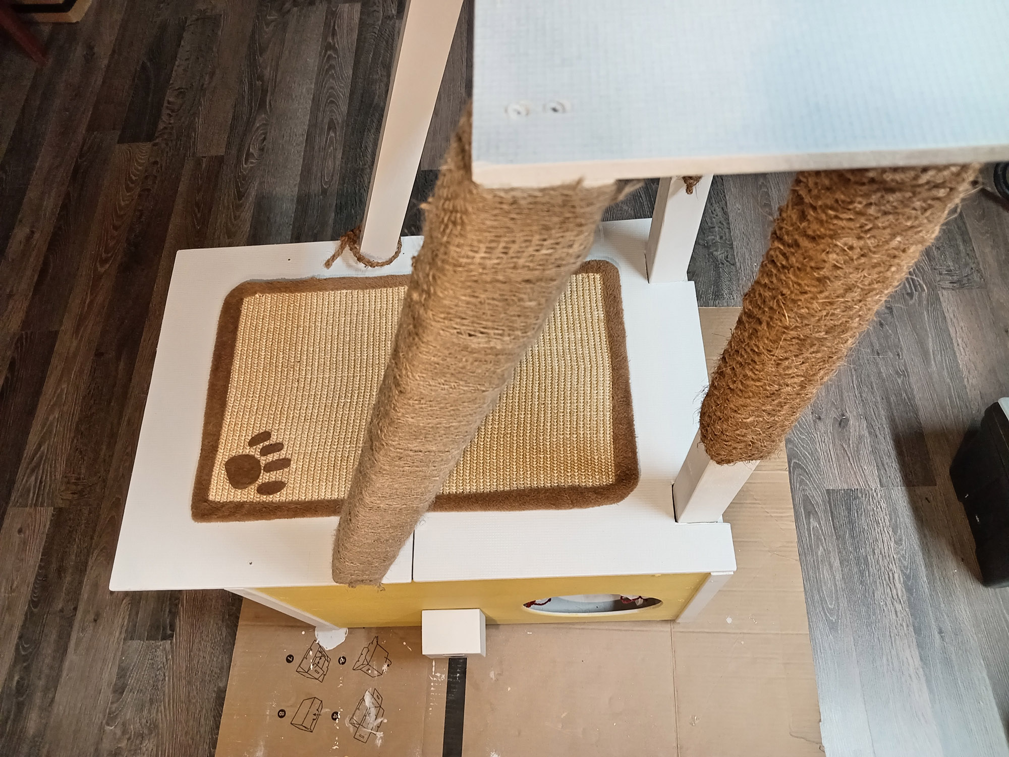 Kissan koppi valmistui joulukuussa 2025, joten kissa pääsee jouluksi (uuteen) kotiin. Materiaali on pääasiassa kierrätysmateriaalia työmailta ja omista projekteistani.